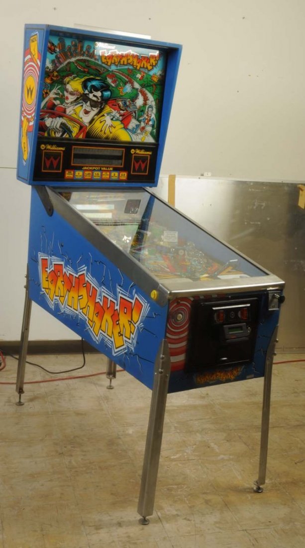 SoldEarthshaker! Pinball Machine, by Williams 1989Serial Number: 568 210704, 115V, 60H, and 8.0Amps. Not tested for working condition, losses. 6'2-1/2"h x 4'6"d x 29"w Property from a Short Hills, NJ and San Francisco, CA Private CollectionSee Sold Price