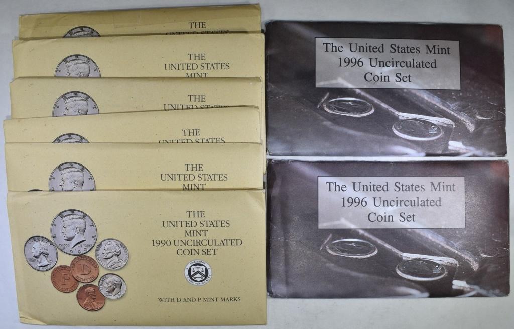 1990 (6), '96 (2) US MINT SETS
