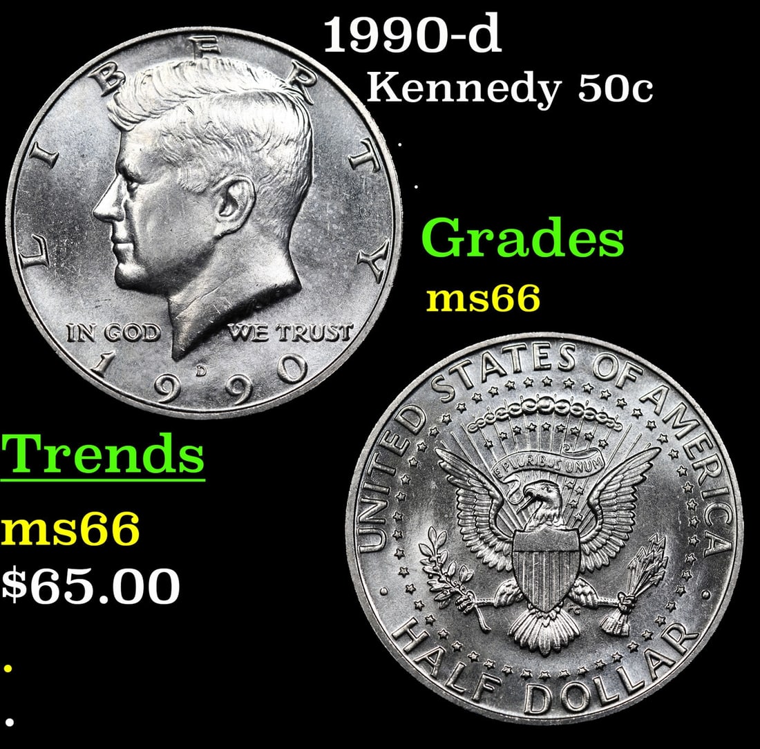 1990 D Kennedy Half Dollar 50c Grades Gem+ Unc