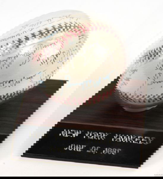 1990 NEW YORK YANKEES SIGNED BASEBALL TROPHY MOUNT