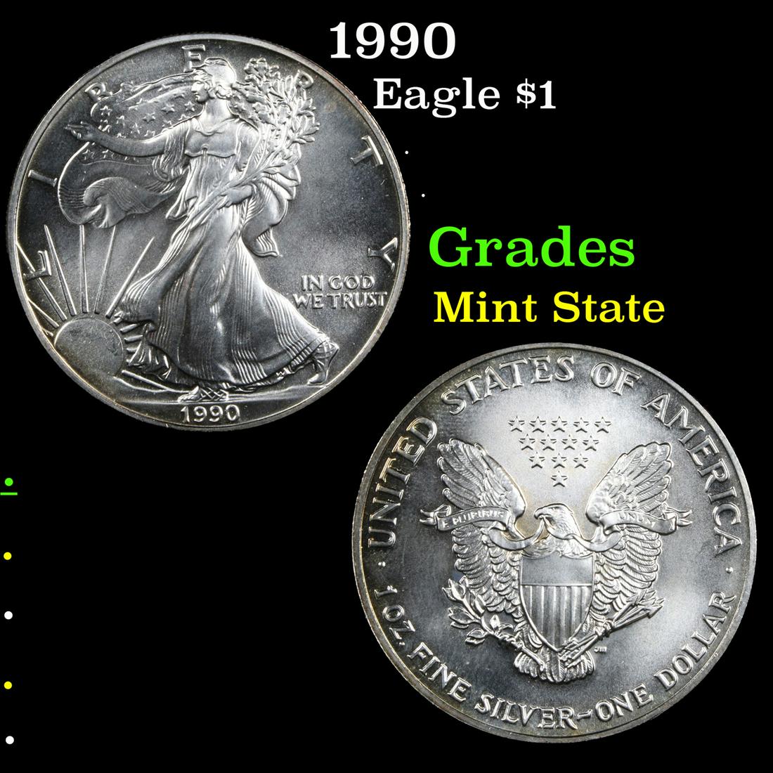 1990 Silver Eagle Dollar $1 Grades Mint State