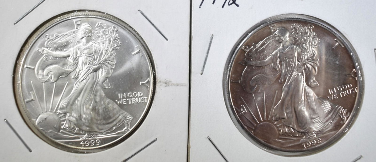 1992 & 99 BU AMERICAN SILVER EAGLES