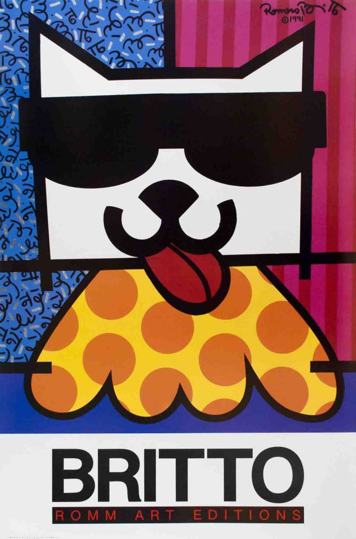 1992 Britto Cat with Sunglasses Poster