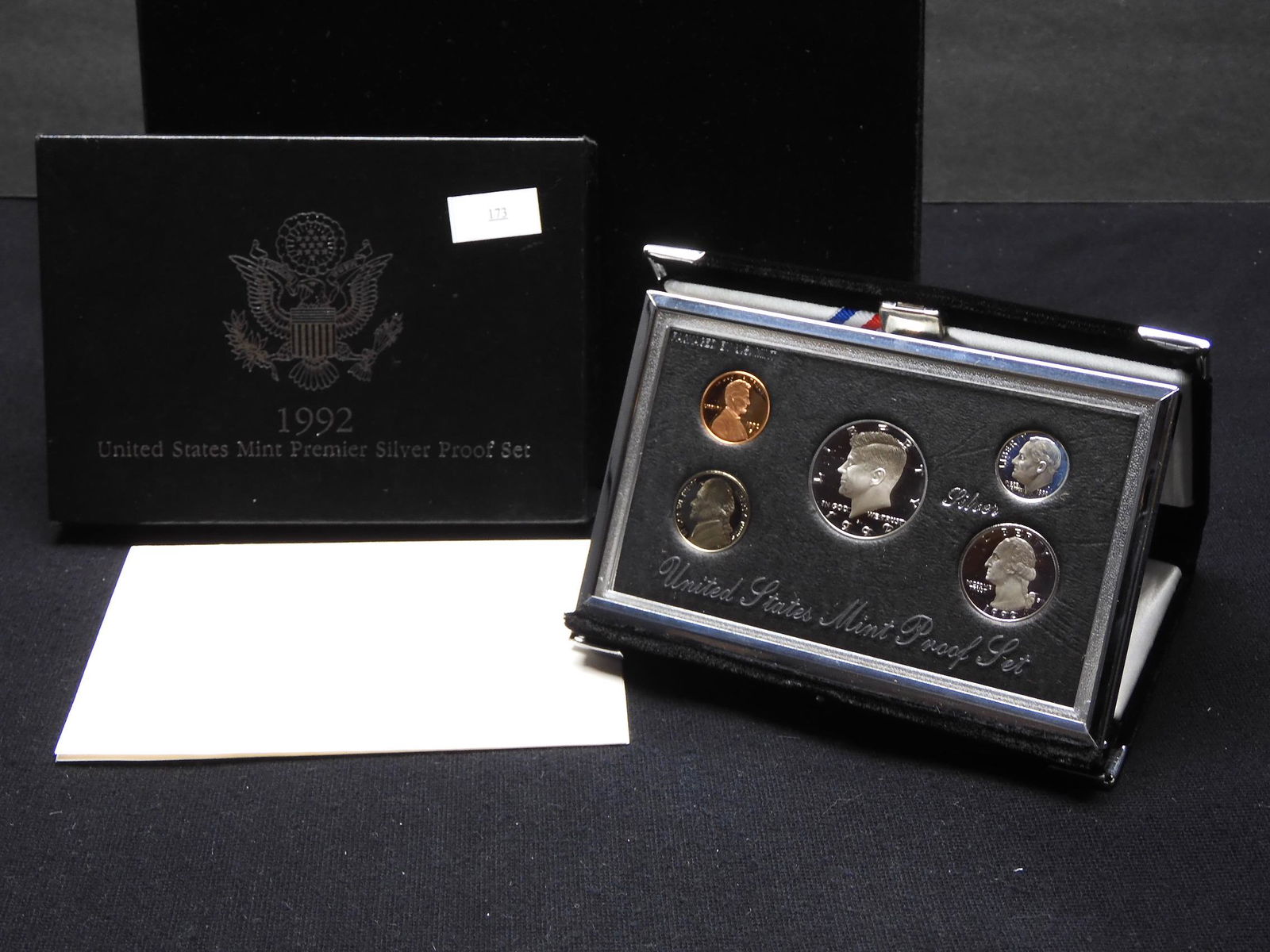 Sold1992 U.S. Mint Premier Silver Proof Set (5-coins)Winner shall receive one (1) coin set precisely resembling the (5-coin) set shown here. (SJ/B)See Sold Price