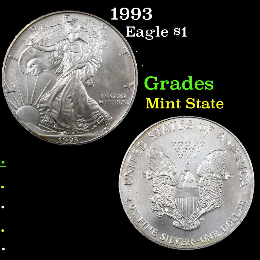 1993 Silver Eagle Dollar $1 Grades Mint State