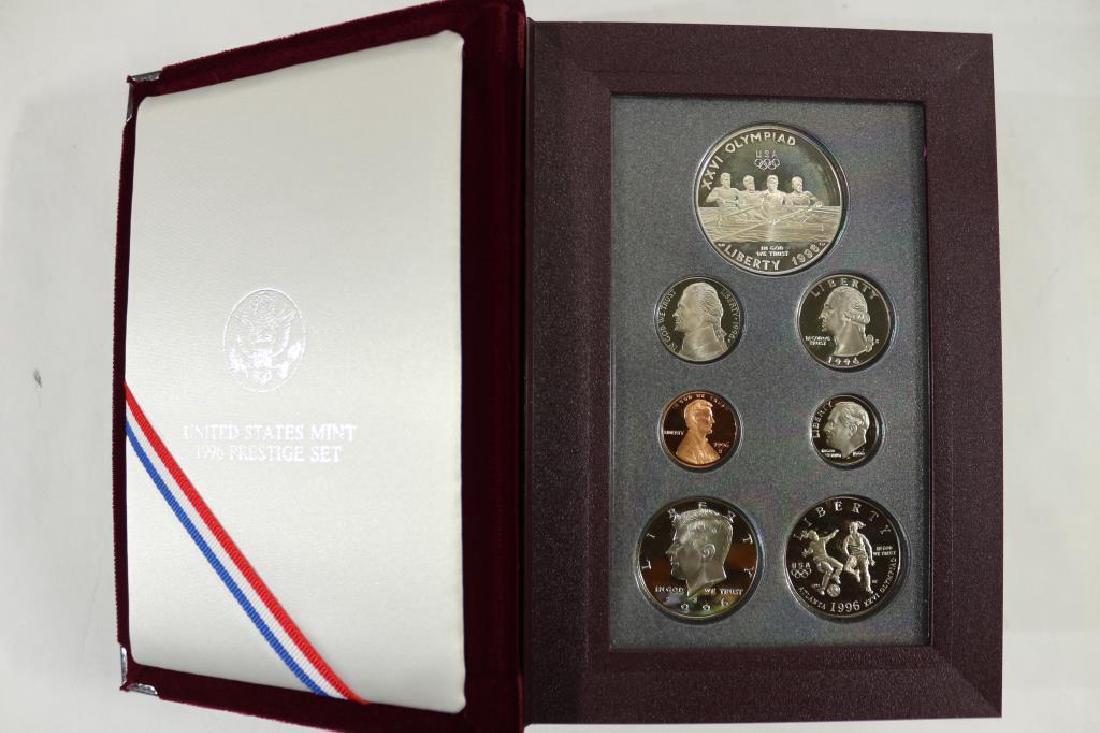 Sold1996 U.S. Mint Prestige Proof Set1996 U.S. Mint Prestige Proof Set. 1996 Prestige Olympic Coin Set. Olympic Coins of the Atlanta Centennial Games! Includes the Rowing Commemorative Silver Dollar (90% silver) and the Soccer Clad HalfSee Sold Price