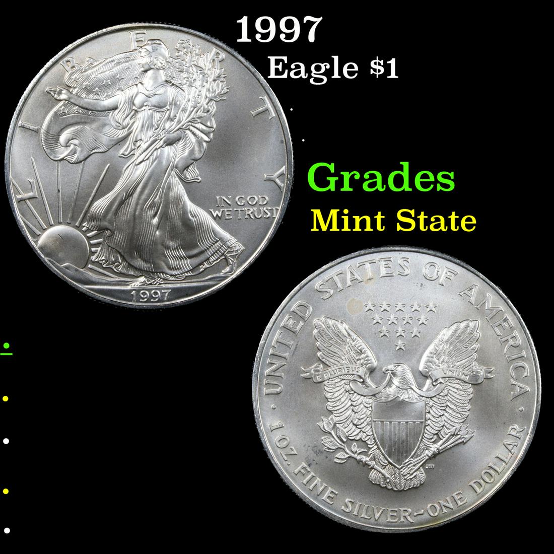 1997 Silver Eagle Dollar $1 Grades Mint State