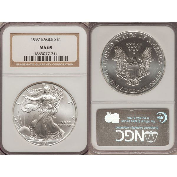 1997 Silver Eagle MS69 NGC - Brown Label