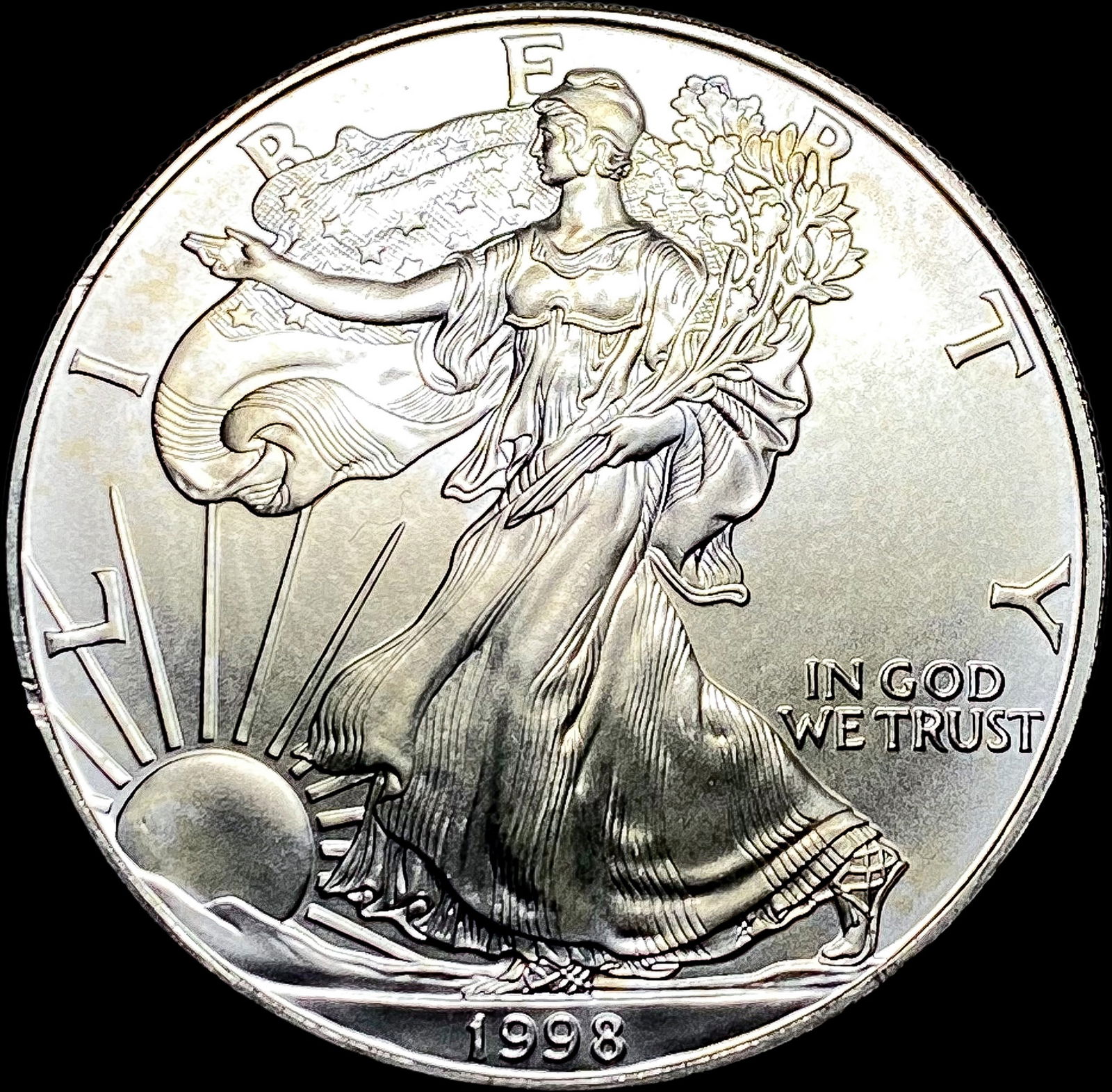 Sold1998 1oz Silver American Eagle SUPERB GEM BU1998 1oz Silver American Eagle SUPERB GEM BUSee Sold Price