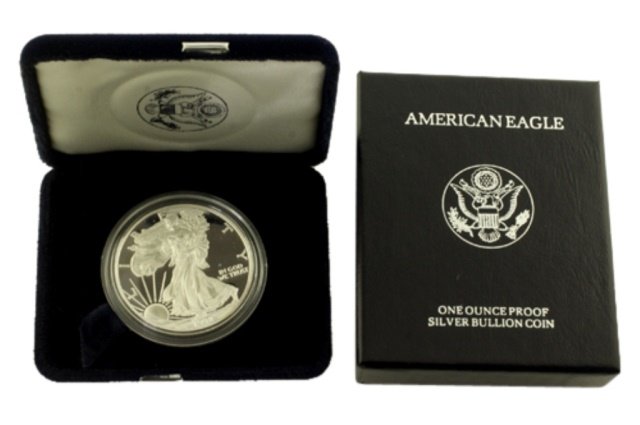 Sold1995 P Silver American Eagle One Ounce Proof CoinEst $60 - 80 1995 P Silver American Eagle One Ounce Proof Coin. One ounce proof silver bullion coin. Comes with original box and COA.See Sold Price