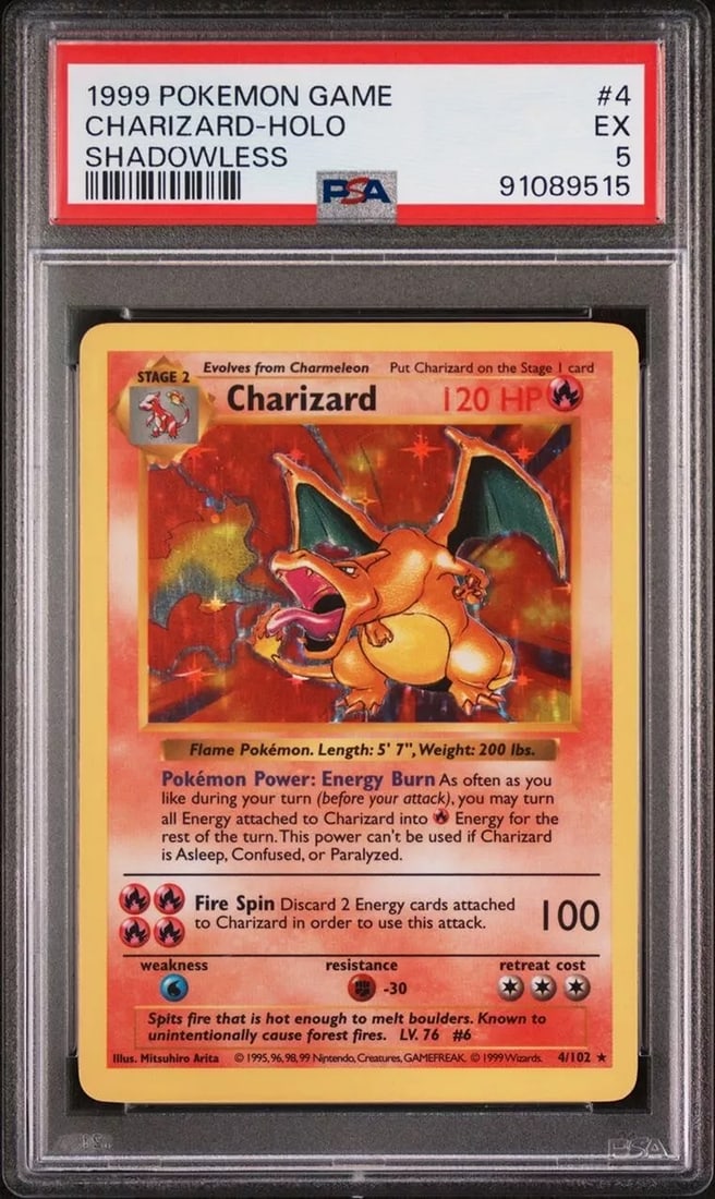 1999 Pokémon Charizard Holo Base Set Shadowless Psa 5