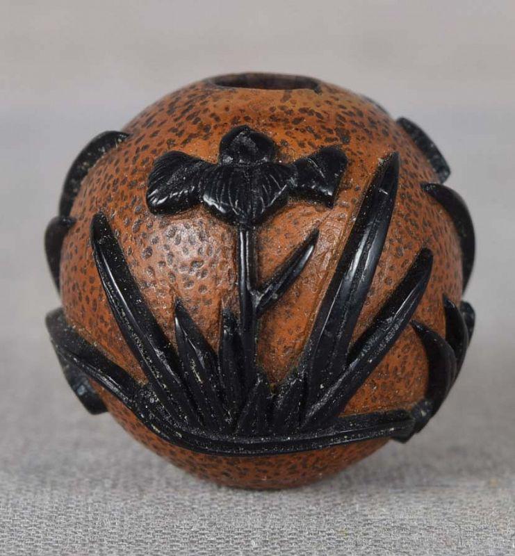 19c Japanese lacquer OJIME netsuke slide IRISES