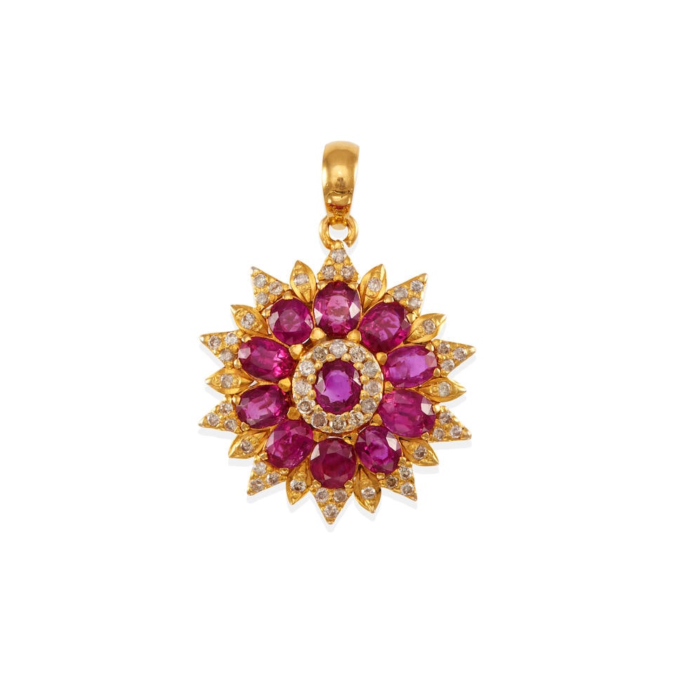 19K GOLD, RUBY, AND DIAMOND PENDANT