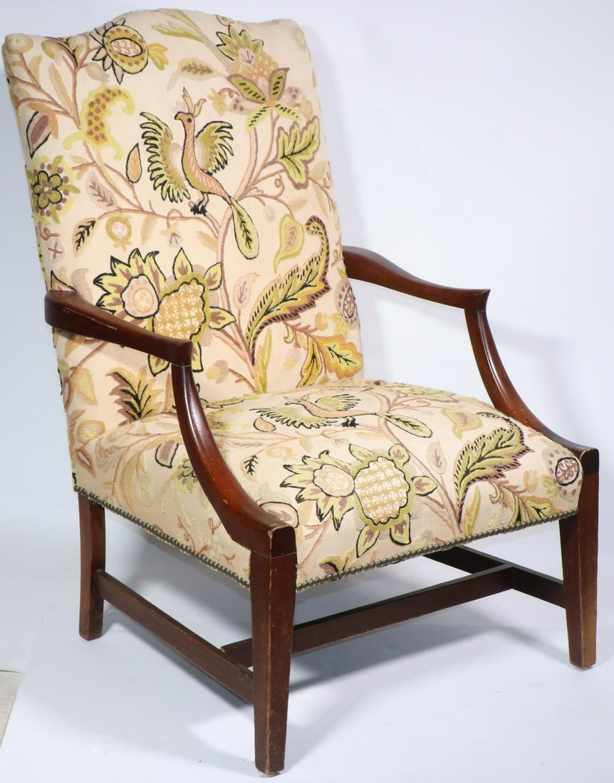 19TH C. AMERICAN CREWELWORK UPHOLSTERED MARTHA