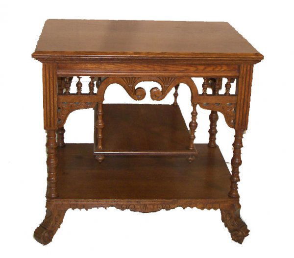 19th C. American quartersawn oak table with spindle