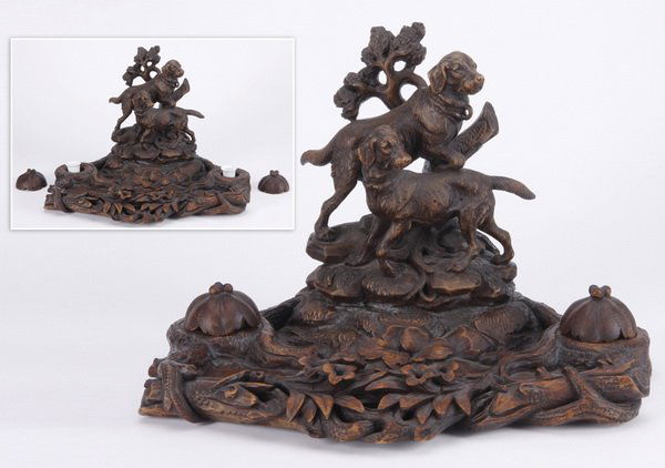 ANTIQUE BRONZEWARE, INKWELLS, CHAMBERSTICK ETC.Mar 07, 2026A CHENXIANG AGARWOOD CARVING OF A LANDSCAPE MOUNTAIN WITH FIGURES, QING DYNASTYMar 08, 2026A Black Forest carved linden wood figural dog group, early 20th century, Swiss, probably retailed by5 hrs LeftA VICTORIAN CAST IRON DOG STICK STAND, LATE 19TH CENTURYMar 03, 2026Exceptional Black Forest carved walnut tantalus box with dogMar 07, 202619th Cent. Anglo Indian Carved Wood PedestalMar 03, 2026High Victorian 19th Century English Brass Dog Double Inkwell6 days LeftChinese Carved Soapstone Foo Dog CensorMar 07, 202619th Century French Spelter Dog Sculpture by Jules Moigniez7 hrs LeftLate 19th Century French Lacquer & Bronze Encrier InkwellA Chinese gilted Bronze Tripod Censer with Lion-Dog Finial with sign "DA MING XUAN DE YAN ZHI"3 days Left20th Cent. Black Quartz Chinese Inkwell & Censer.4 days LeftJapanese Meiji Bronze Lidded Incense BurnerMar 10, 2026Black Forest Figural Carved Wall ShelfMar 14, 2026Edward Farmer Art Deco Chinoiserie Inkwell with Foo Dogs 19256 days LeftA Caldwell & Co. Renaissance Style Bronze Inkwell4 days Left
