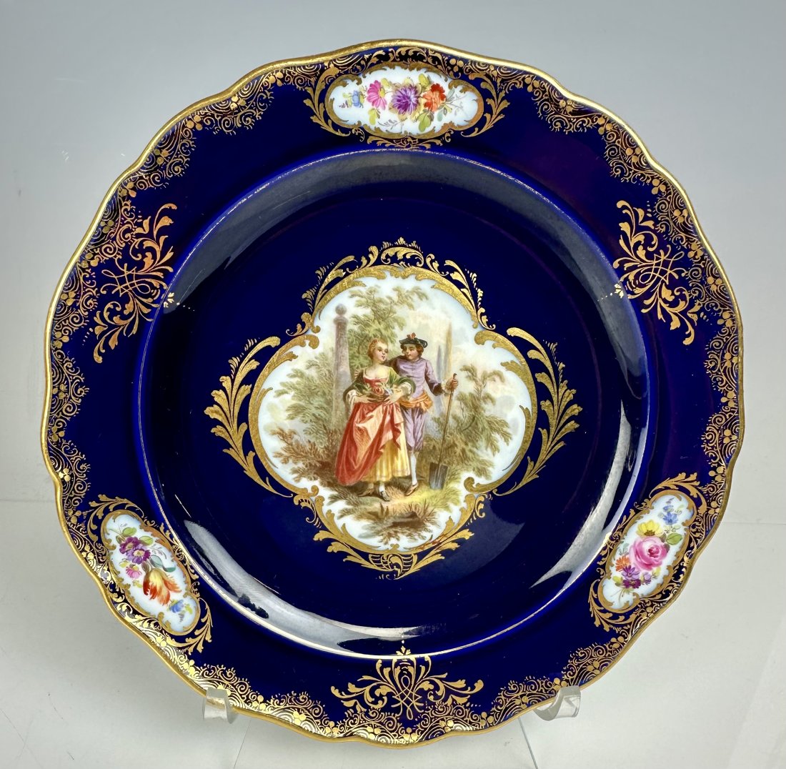 Antique Meissen plate in hand-painted porcelain. Romantic scene, blue border with gold decoration.Chairish Auctions4.5(10.3k)$110