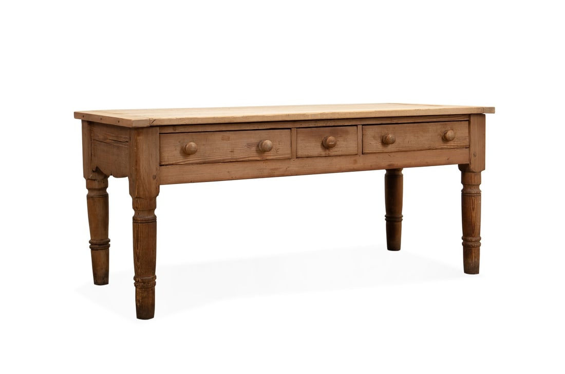Vintage Rustic Colonial Revival Pine Writing Desk6 days LeftAntique Mission Style Quartersawn Oak Side Table6 days LeftOak Refectory Table, England, 18th century,Magnificent Late 20th Century Solid English Pine Large-Scale Harvest Console Table w/ 3-DrawersMar 27, 2026Antique French Pine Plank Trestle Farm TableAMERICAN HEPPLEWHITE PINE TWO-DRAWER WORK TABLE.Mar 19, 2026Antique Pine Farmhouse Work Table1 day LeftGEORGE III YEW WOOD WORK TABLE.Mar 19, 2026A FRUITWOOD AND PITCH PINE SIDE OR SERVING TABLE, MID 19TH CENTURYMar 25, 2026EIGHTEENTH CENTURY OAK TABLE WITH TWO DRAWERS AND TWIST FORM LEGS.Mar 24, 2026LATE NINTEENTH CENTURY PINE TABLE WITH ONE DRAWER AND FLUTED LEGSMar 24, 2026Rustic Antique Primitive Table with Drawer and Turned LegsMar 17, 2026Monumental Pine Refectory Table With Turned Legs And Storage CubbiesMar 17, 2026Late 19th Century Farmhouse Table With Turned Legs and DrawerMar 23, 2026Stickley Brothers Antique Oak Library Table Desk with 3 Drawers C19204 days LeftVintage Boho Farm Table with Turned Legs and Center DrawerMar 16, 2026