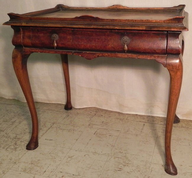 19th c. burl walnut Queen Anne tea table.