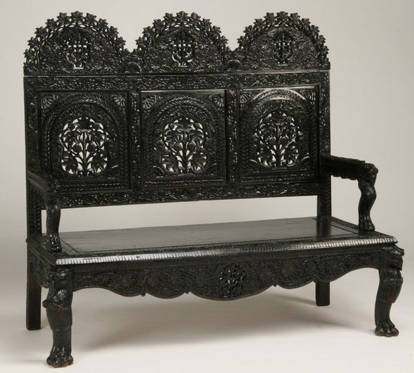 19th c. carved and ebonized Burmese settee