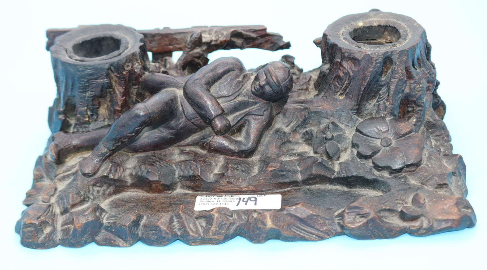 19TH C. CARVED BLACK FOREST WALNUT INKSTAND