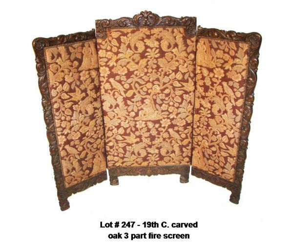 19th C. carved oak 3 part firescreen