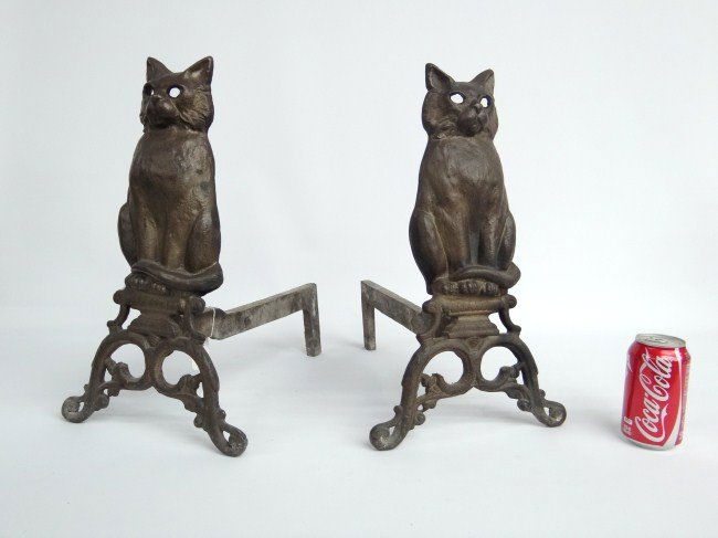 19th c. Cat Andirons