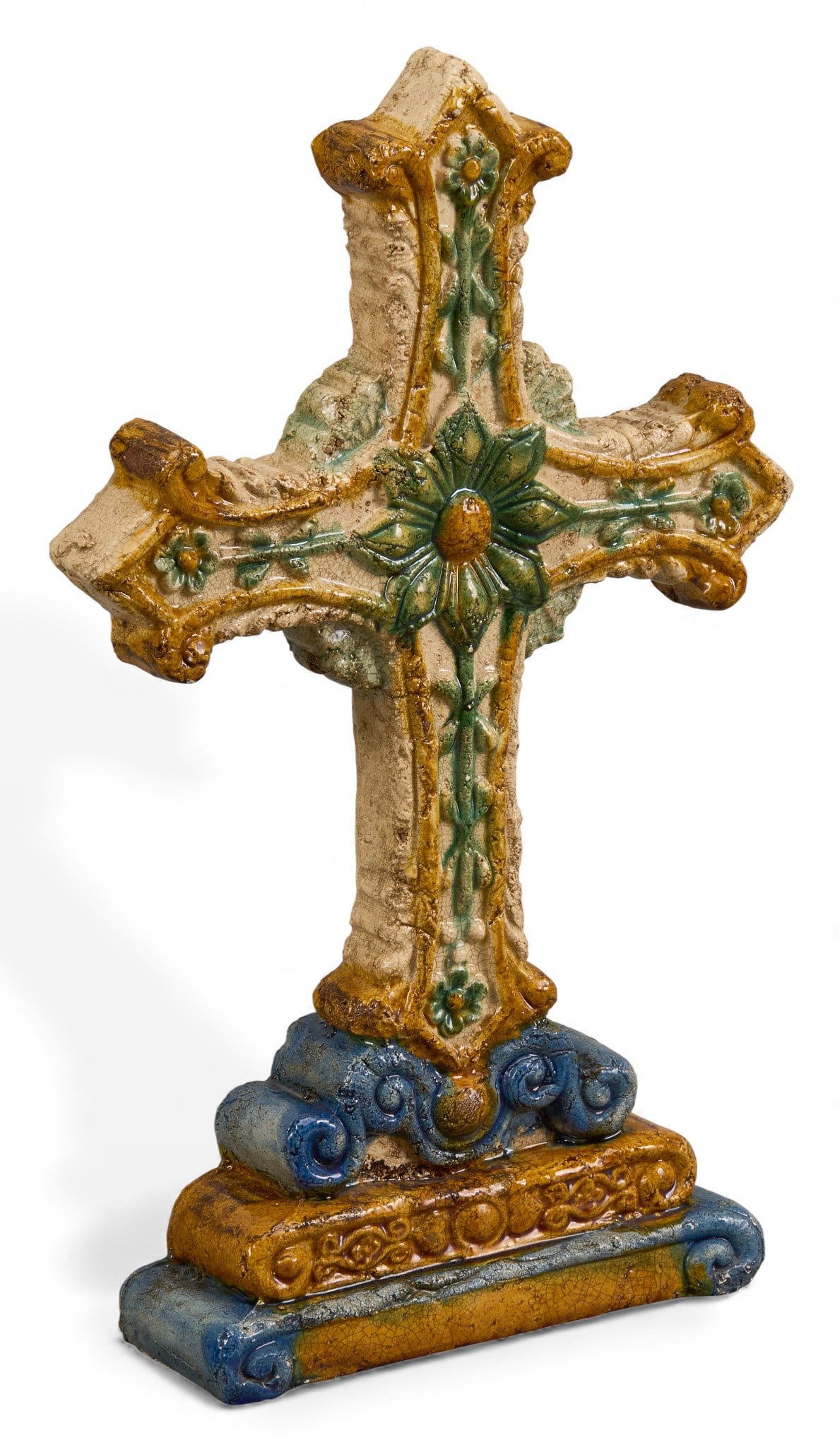 19th Century Rouen Hand-Painted Faience Cross Dated 1885