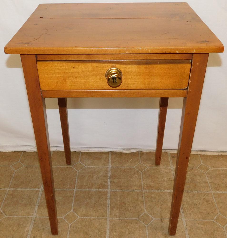 Sold19th c. Single Drawer StandMid 19th c. cherry and maple single drawer stand. 18 1/2" x 16 1/2" x 28 1/2".See Sold Price