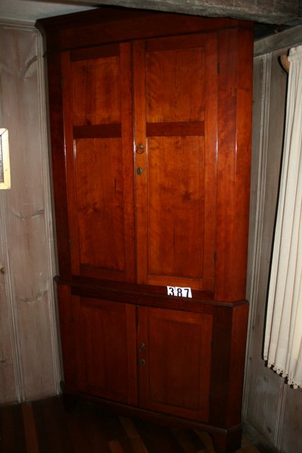 19TH C. CHERRY WOOD CORNER CUPBOARD, N.J. ORIGIN,