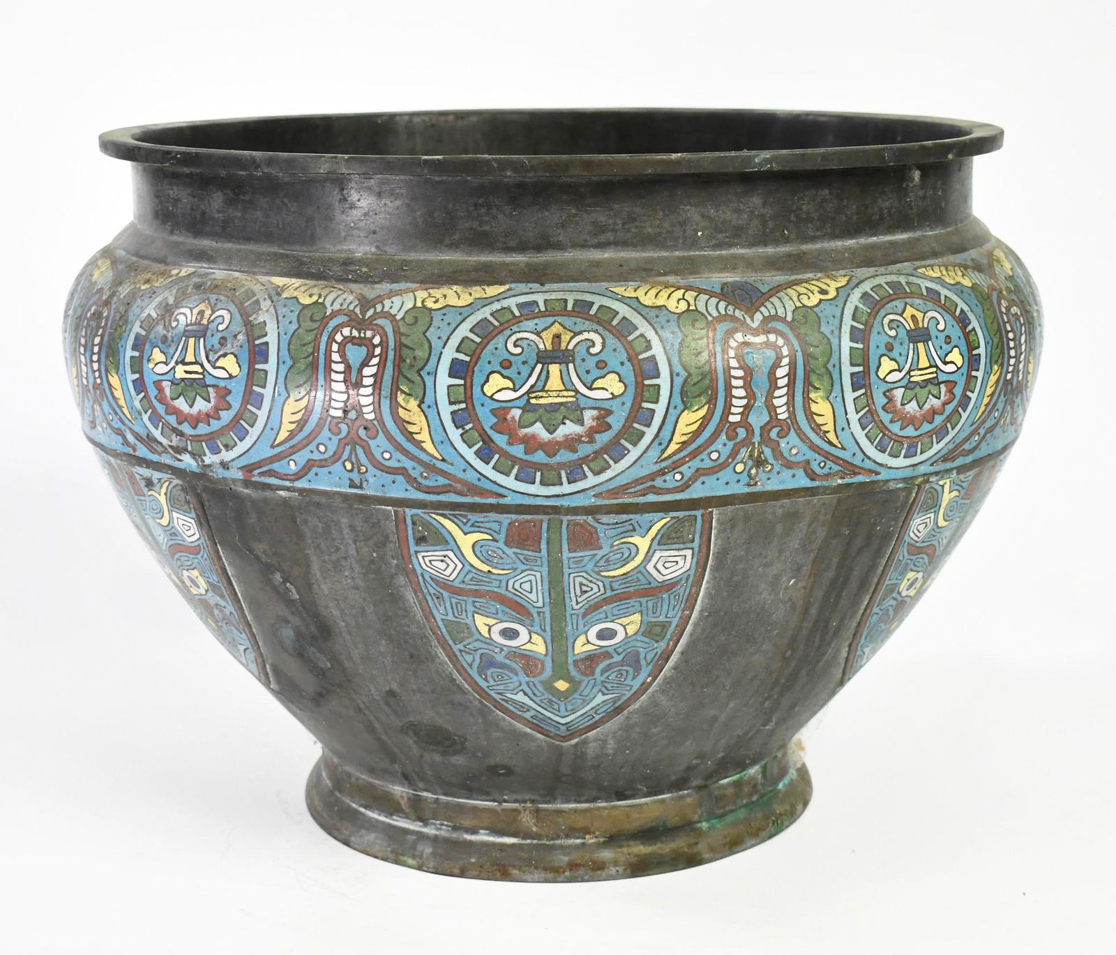 19TH C. CHINESE CHAMPLEVE BRONZE JARDINIERE.
