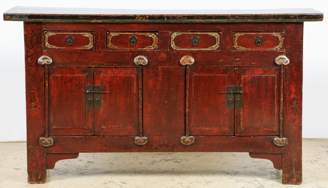 19th C. Chinese Red Lacquer Sideboard