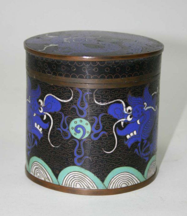 19th c Cloisonne Round Lidded Box. 4"h