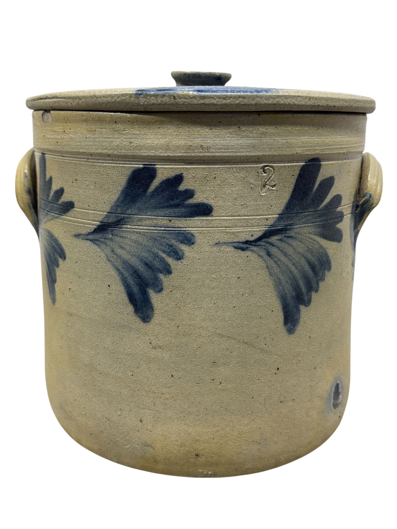 19th C. Cobalt Blue Stoneware Lidded Crock