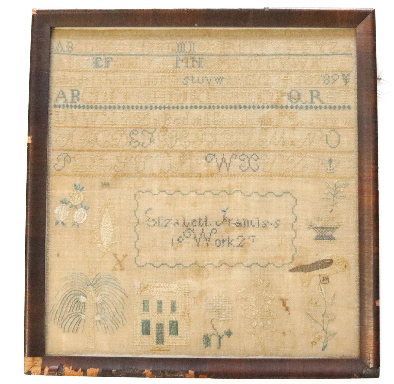 Early 19th Century Alphabet & Verse Sampler – Silk on Linen Needlework, Blue Floral Motif,Apr 10, 2026Three American Needlework Samplers7 days LeftTwo American Hymnal Needlework Samplers, Mitchell Family7 days Left19th c. Needlework SamplersApr 11, 2026Colt Engraving Sampler Edition .45 LC RevolverApr 25, 202619th C. Framed Alphabet Sampler by Mary A. Ever c.1828?May 03, 2026Three English Needlework Samplers, Ashford Family7 days LeftLettering/branding cloth in frame9 hrs LeftRare Antique Persian Sultanabad 19th Century Rug by Ziegler & Co6 days LeftThree American 19th Century Needlework Samplers, Pictorial and Verse7 days Left(2) Paintings after Ralph EarlApr 25, 2026Framed Thankful Hearts cross stitch sampler(18inx22in)4 days LeftA map of Connecticut and Rhode Island with Long Island Sound. GENTS MAG 1776Two American Needlework Samplers7 days Left(3) Cast Iron Mechanical BanksApr 25, 2026Dated 1869 Silk on Linen Alphabet Sampler – Florence Estella Hayner – AmericanApr 10, 2026