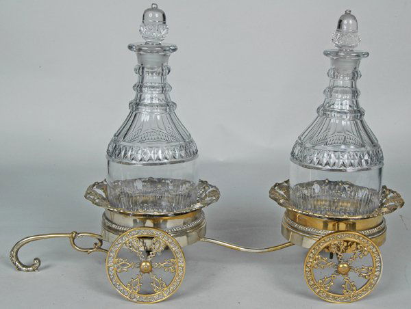Lot of Vintage Pressed Glass Liquor/ Wine DecantersMar 29, 2026Pair 19th Century Cut Glass Decanter3 days LeftGeorgian Faceted Cut Crystal Decanters, Pair5 days LeftGeorge I Sterling Silver Cruet StandMar 16, 2026Lobed Cut Crystal Decanters, Pair5 days LeftJeweled Ormolu Cruet Set, 19th century,Georgian Cut Crystal Ship's Decanters, Pair5 days LeftPair Quality Antique Crystal Glass Lustres Adorned with Large Cerystal Prisms 15.75 inches heightMar 15, 2026Pairpoint (American) 5 Bottle Quadruple Plate Cruet Castor Revolving Set 1880, H 16.5" Dia. 7" 2Mar 19, 2026AB Segerstrom Eskilstuna Sweden Silver Plate Coaster with Glass Decanter and Cruet StandMar 17, 2026Pair, Antique French Baccarat Houbigant Gilt Crystal Perfume Bottles C. 1920PR OF CUT CRYSTAL FRENCH EMPIRE STYLE URN LAMPS 49" X 9" OVERALLMar 15, 2026Rare pair of antique crystal vases thought to be Baccarat, mounted on Persian metal basesMar 24, 2026Monumental Pair of French Gilt-Bronze Mtd. Cut-Crystal Vases5 days Left