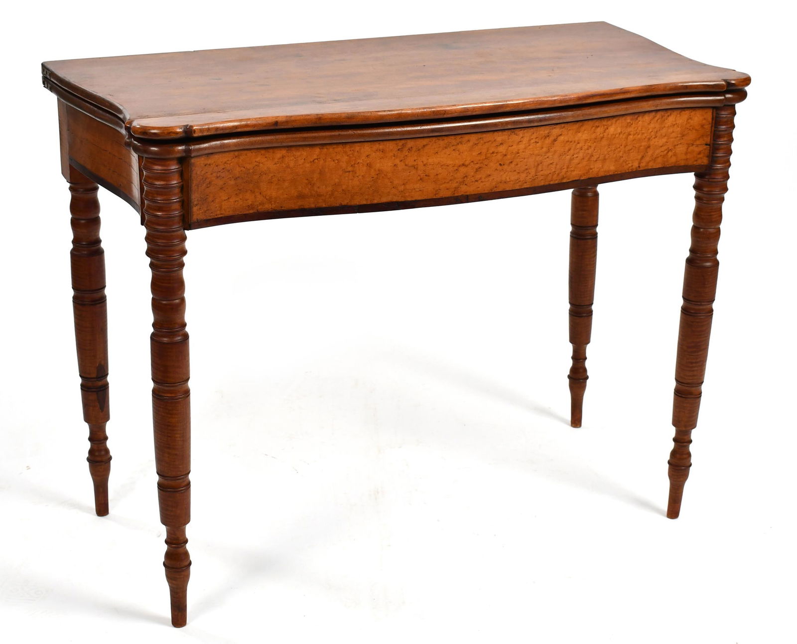19TH C. DUNLAP BIRCH AND MAPLE CARD TABLE.