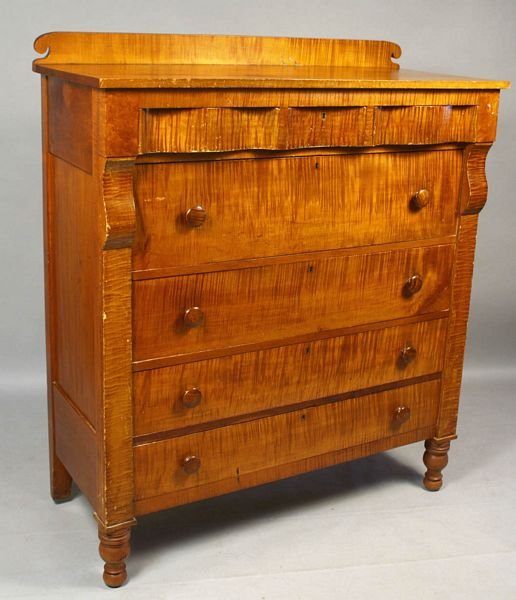 19th C. EMPIRE FIGURED MAPLE 3-OVER-4 CHEST