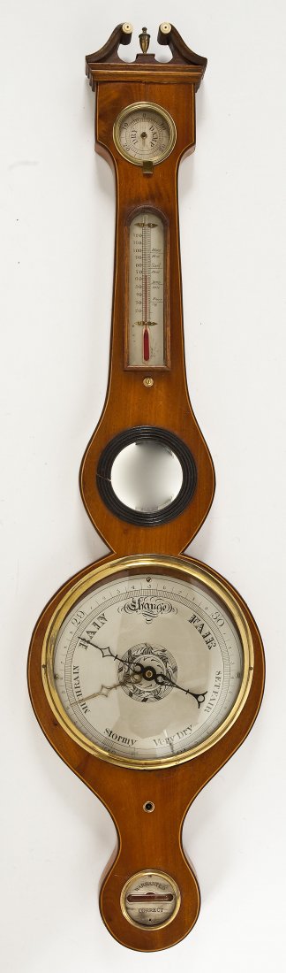 SoldRegency Inlaid Mahogany Banjo BarometerEnglish, 19th C. dial inscribed "JHN Herga Macclesfield" 38-1/2"h x 10"wSee Sold Price