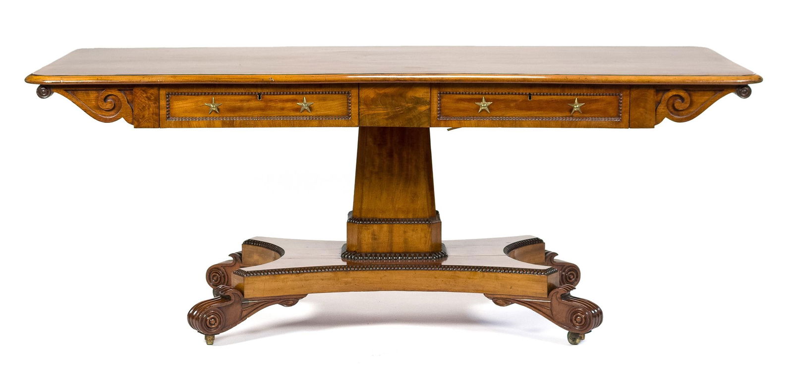 19TH C. ENGLISH MAHOGANY LIBRARY TABLE.