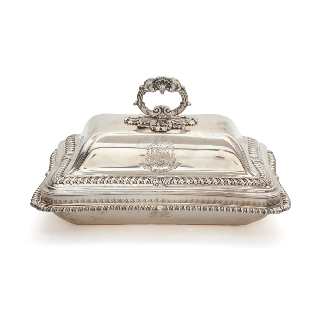 19th C. English Silver Armorial Covered Serving Dish