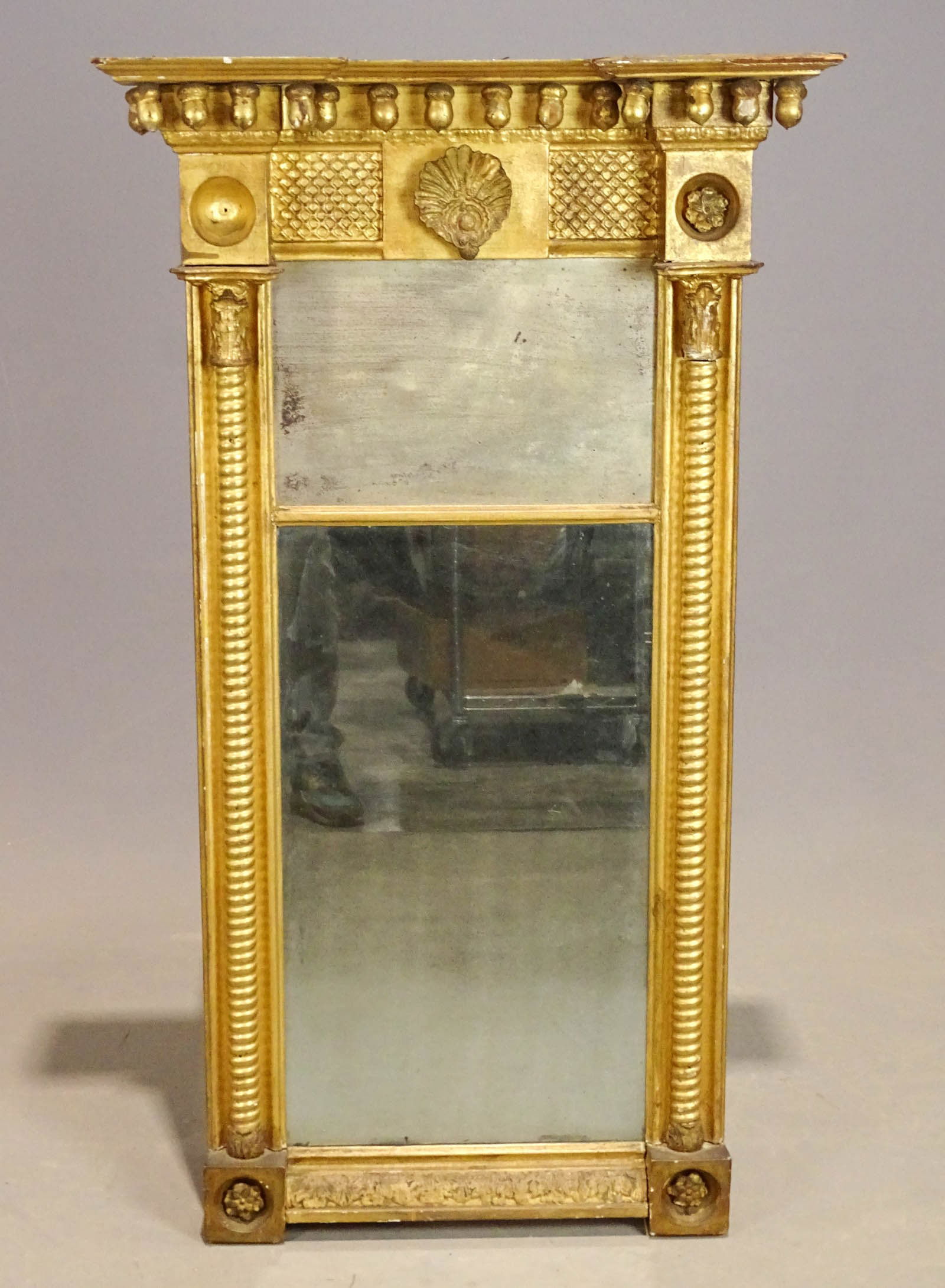 Sold19th c. Federal Mirror19th c. Federal tall split panel mirror. 57 1/2" Ht., 32" W.. Property of The Barbara Packer, Estate, Germantown N.Y. and N.Y.C..See Sold Price