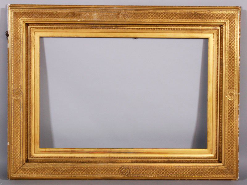 Sold19th C. Gilt Gesso FrameAntique gilt gesso painting frame. [Inside opening: 24" H x 30 1/2" W; Outside: 38" H x 45" W].See Sold Price