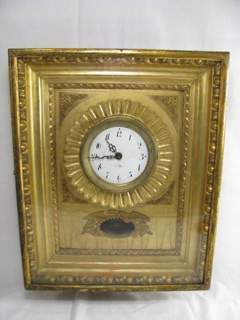 19th C GILT WOOD DECORATIVE SHADOW BOX WALL CLOCK