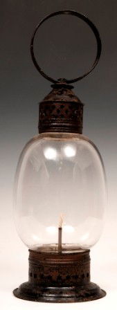 19th C. Globe Oil Lantern with Pierced Tin Frame
