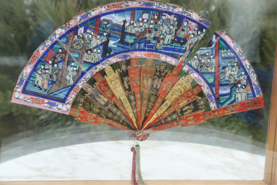 19th.C Chinese Hand Paint Fan w Lacquer Wood Case