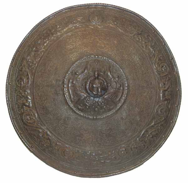 19th C. iron shield with neo-classical figures