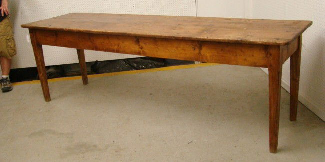 Sold19th c. French Farm Table19th c. French farm table. Drawer has some loss. Top has a crack. 83" x 32" x 30" Ht..See Sold Price