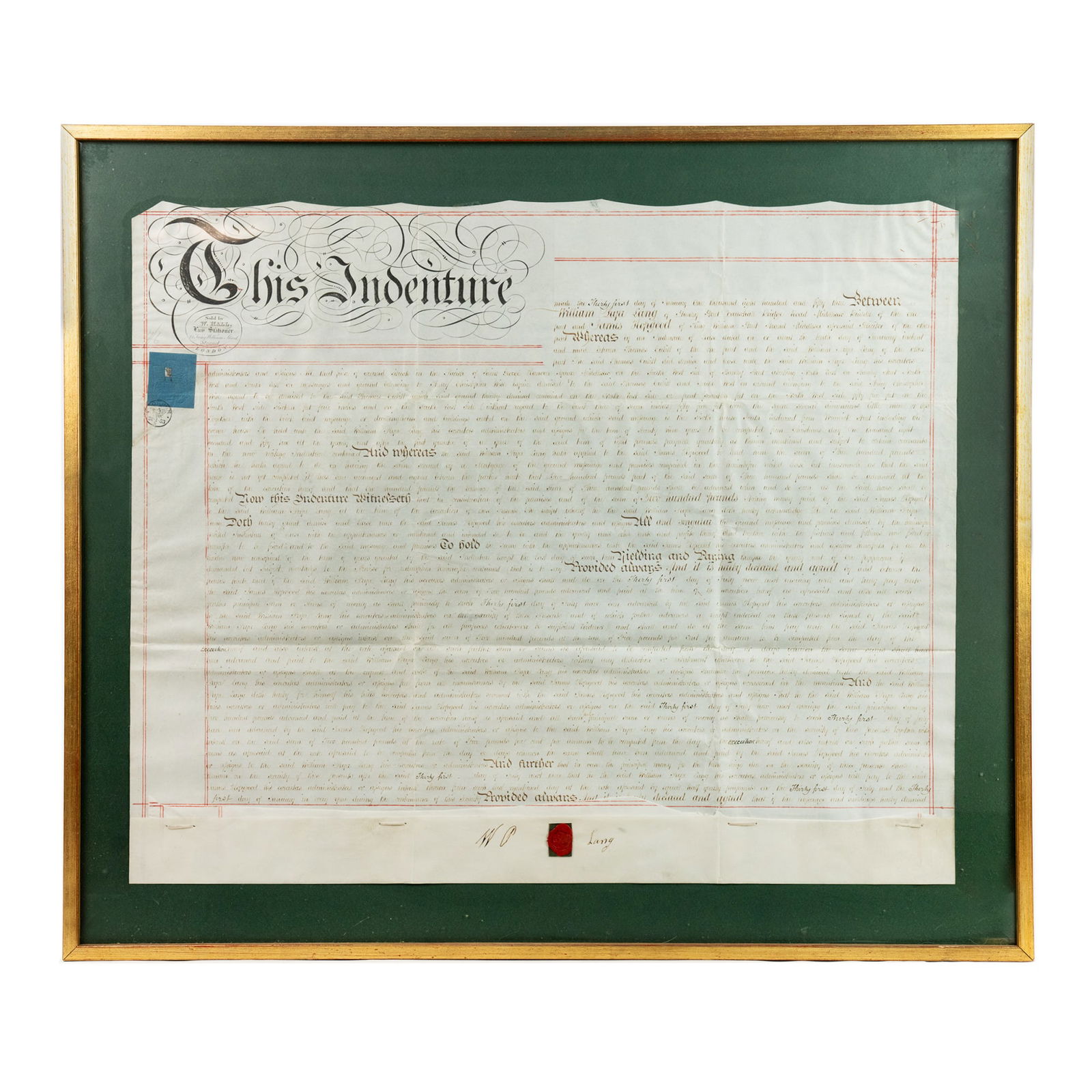 1761 English Vellum Indenture Red Wax Seals.1759 Large English Vellum Indenture Vignette King Portrait Seal1696 English Vellum Deed Red Wax Seals1752 English Vellum Manuscript Final AgreementLarge British Vellum Indenture Document, 17913 days LeftSET OF 4 LARGE FRAMED 19TH CENTURY MANUSCRIPT INDENTURES ON VELLUM10 hrs Left17th Century French Marriage Contract on Laid Cotton Rag PaperMar 28, 2026Early English Parchment Legal Document, 17th/18th C4 days LeftA Framed Indenture with Provenance2 days LeftAustrian Imperial Document FacsimileMay 07, 2026William Thornton 1817 Washington DC Capital Architect Signed Manuscript Document Richard Bland LeeMar 29, 2026Framed Abraham Lincoln & William Seward Signed Ship's Passport Document with Beckett COA6 days LeftChoctaw Nation Land Record Document, Signed by Orlando Brown, 1850Mar 07, 2026Antique 19th C. Land Grant on VellumMar 08, 20261865 Civil War Mustered-In DocumentMar 07, 2026President James Buchanan Signed Land GrantFeb 28, 2026