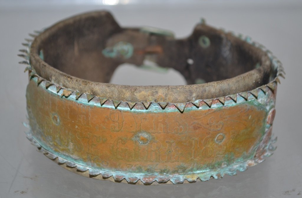 19th C Leather and Copper Slave Collar Dated 1857